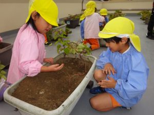 屋上で、お芋掘り!