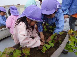 屋上で、お芋掘り!