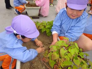 屋上で、お芋掘り!