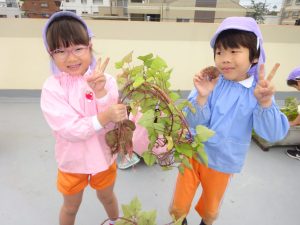屋上で、お芋掘り!