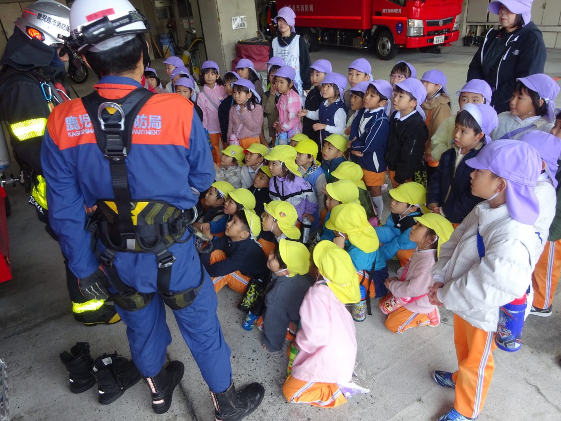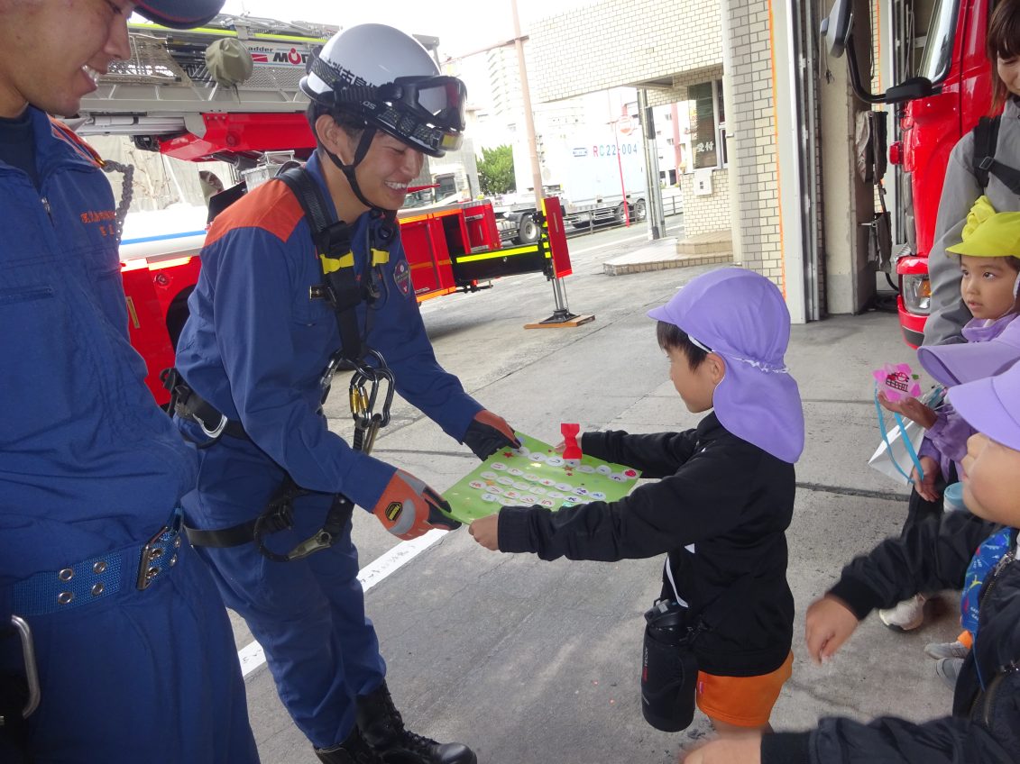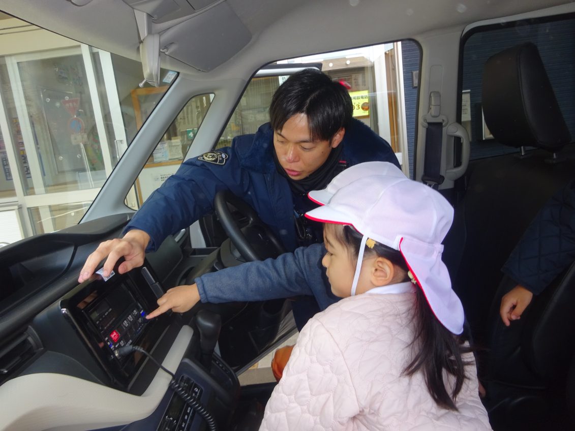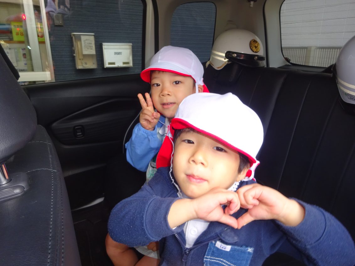 職場見学に行ってきました!! 2025年11月20日 勤労感謝の日にちなんで、荒田交番、中央消防署、郵便局を訪問しました それぞれのお仕事についてお話をうかがったり、パトカーや救急車に乗せていただいたり、感謝の気持ちを込めてプレゼントをしたりと、とてもいい一日を過ごした子どもたちでした