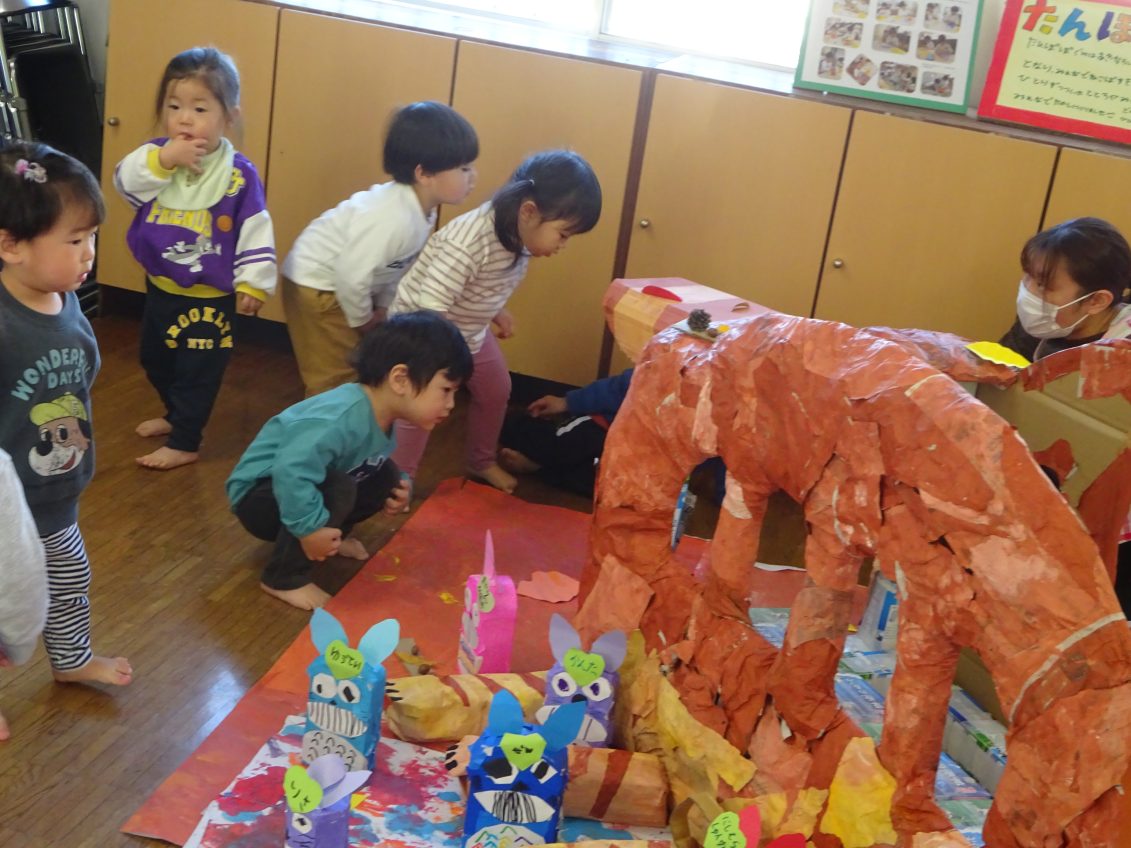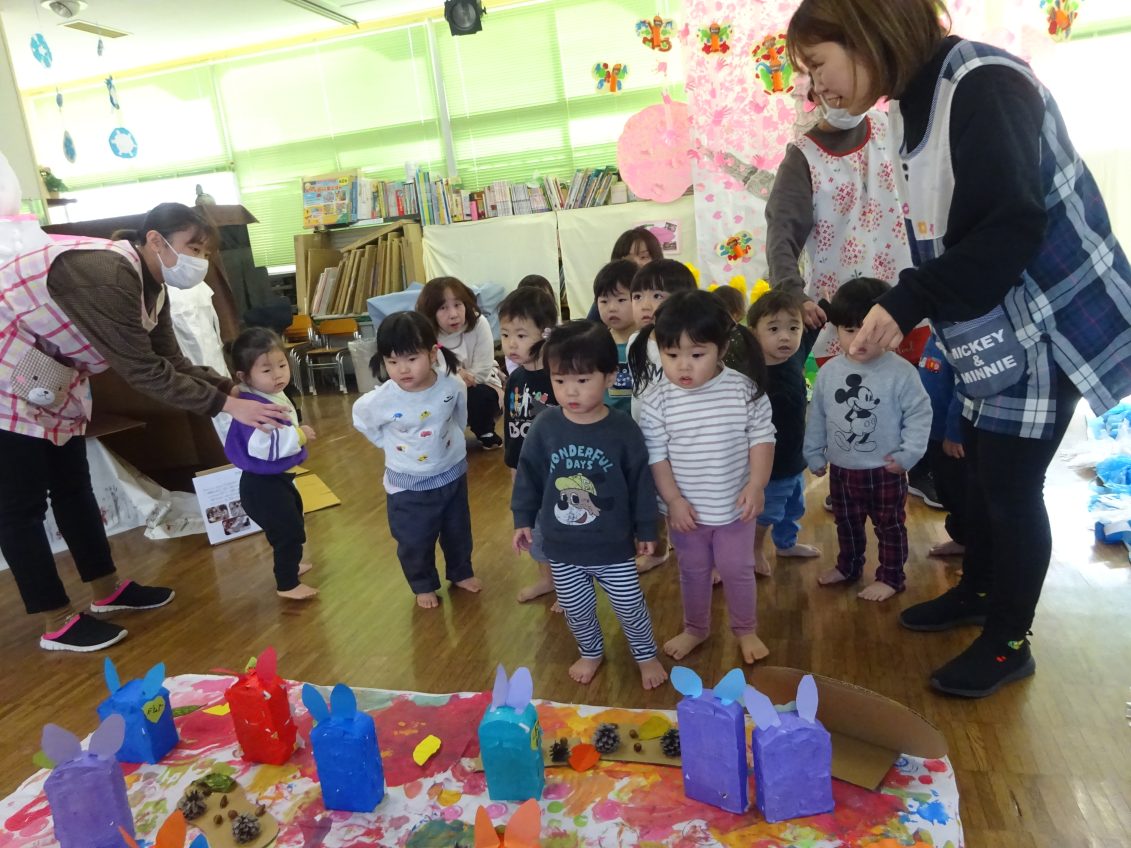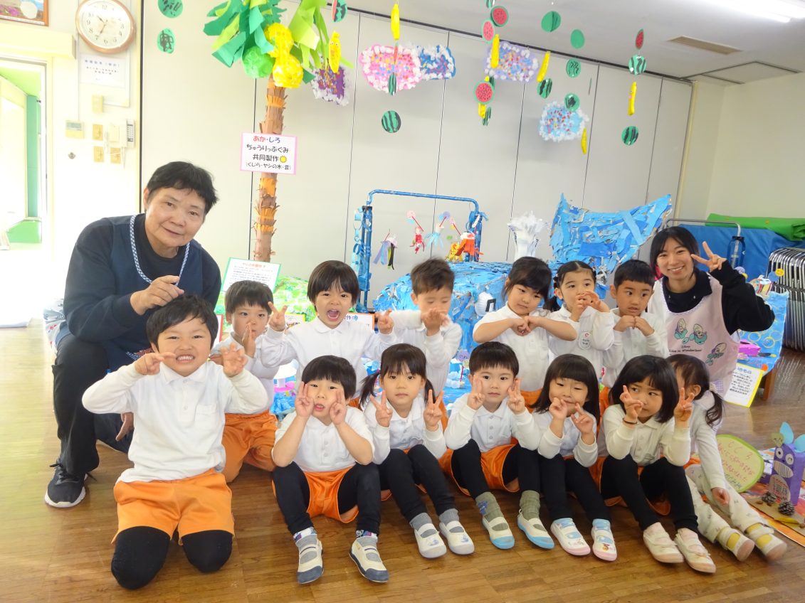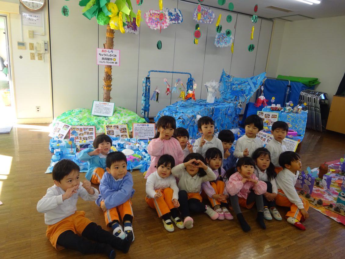 作品展、がんばったよ!! 2026年2月24日 やはたの季節をテーマに、クラスごとに「春・夏・秋・冬」を表現した作品展!! 子どもたちは廃材を利用し、思い思いに製作活動に取り組んでいましたよ😊 おうちの人にいっぱいほめてもらえて、嬉しそうな子どもたちでしたね💕