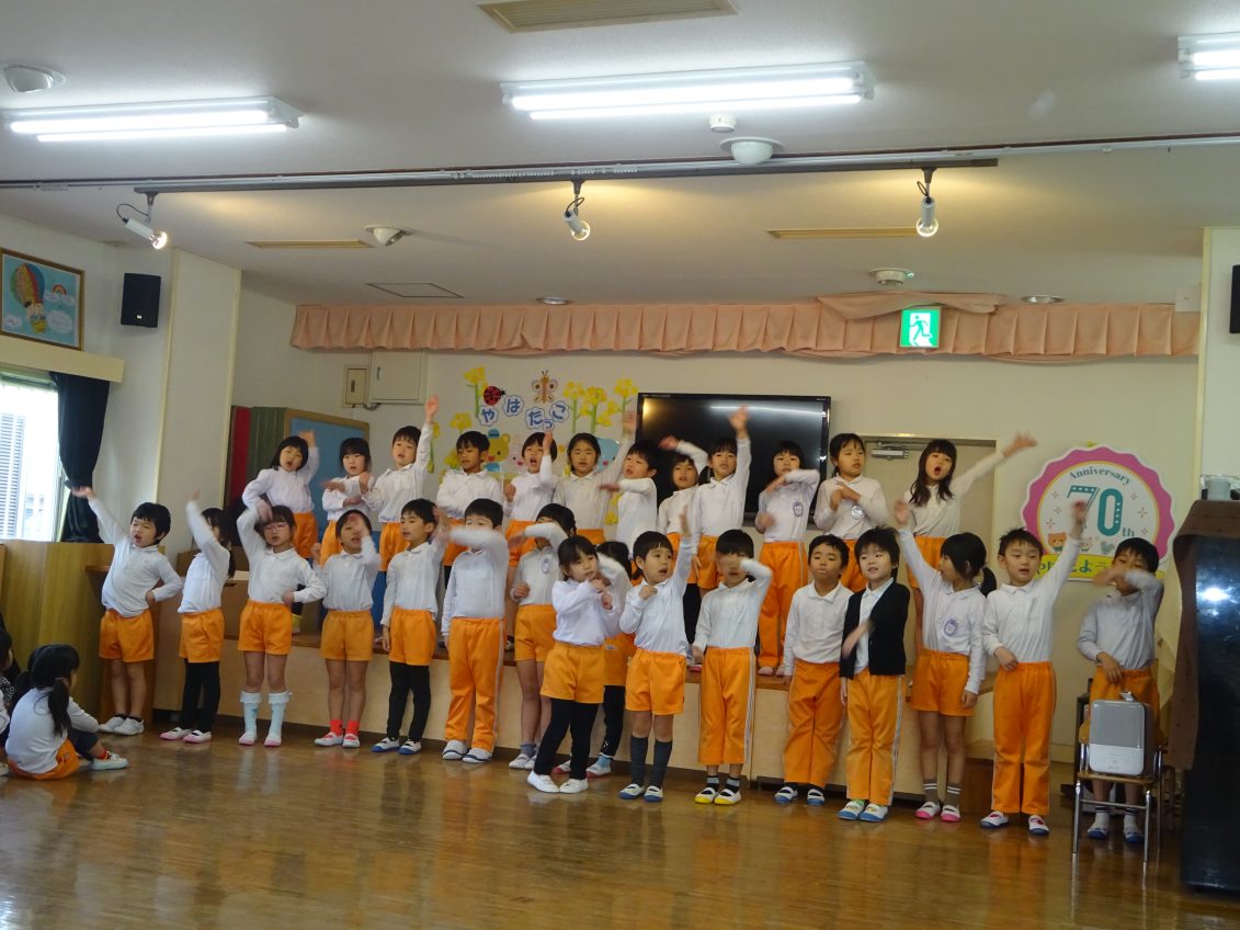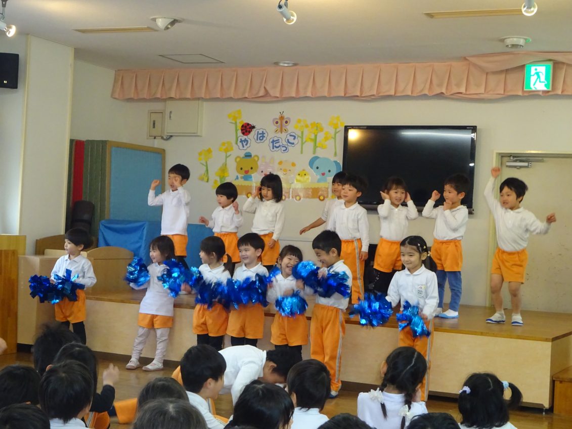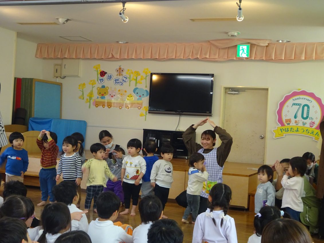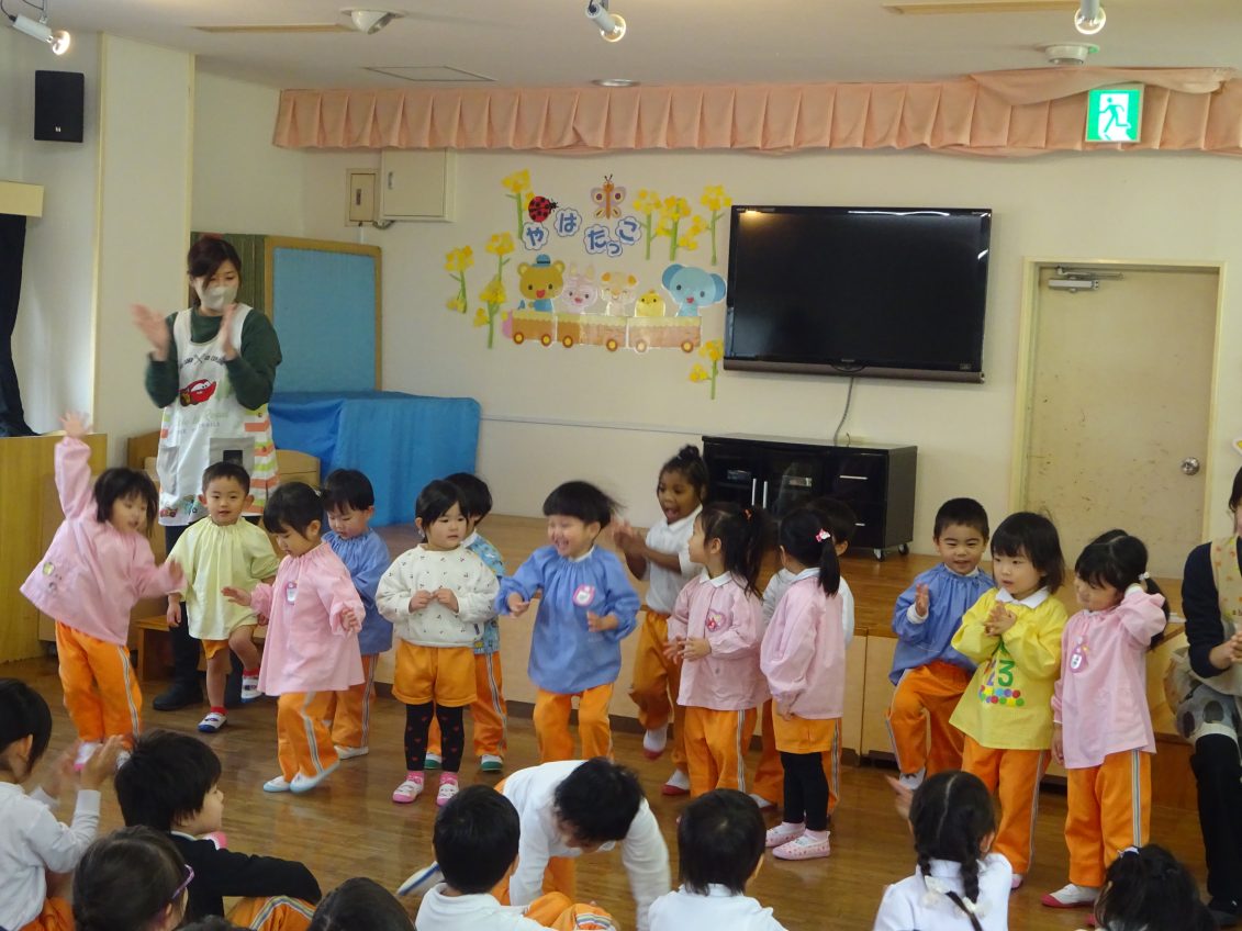 すみれさんとのお別れ会! 2026年3月6日 卒園の日が近づいているすみれさんとのお別れ会を、全園児で行いました 歌やダンスの出し物を披露し、みんなで楽しい雰囲気の中で行えました。 給食もすみれさんを囲んで楽しい昼食となりましたよ