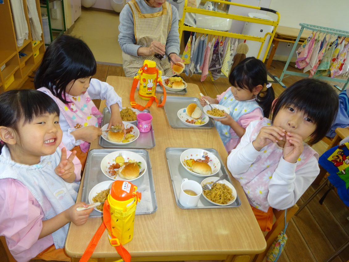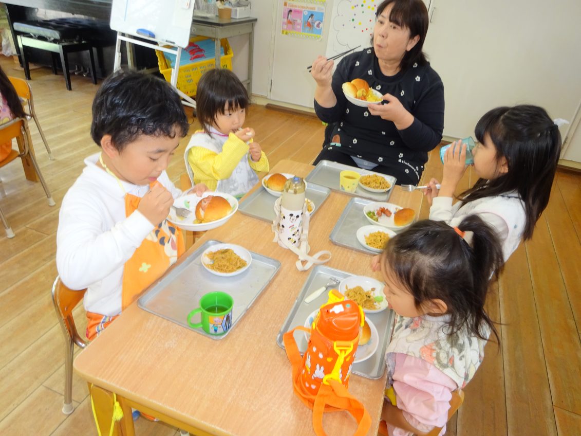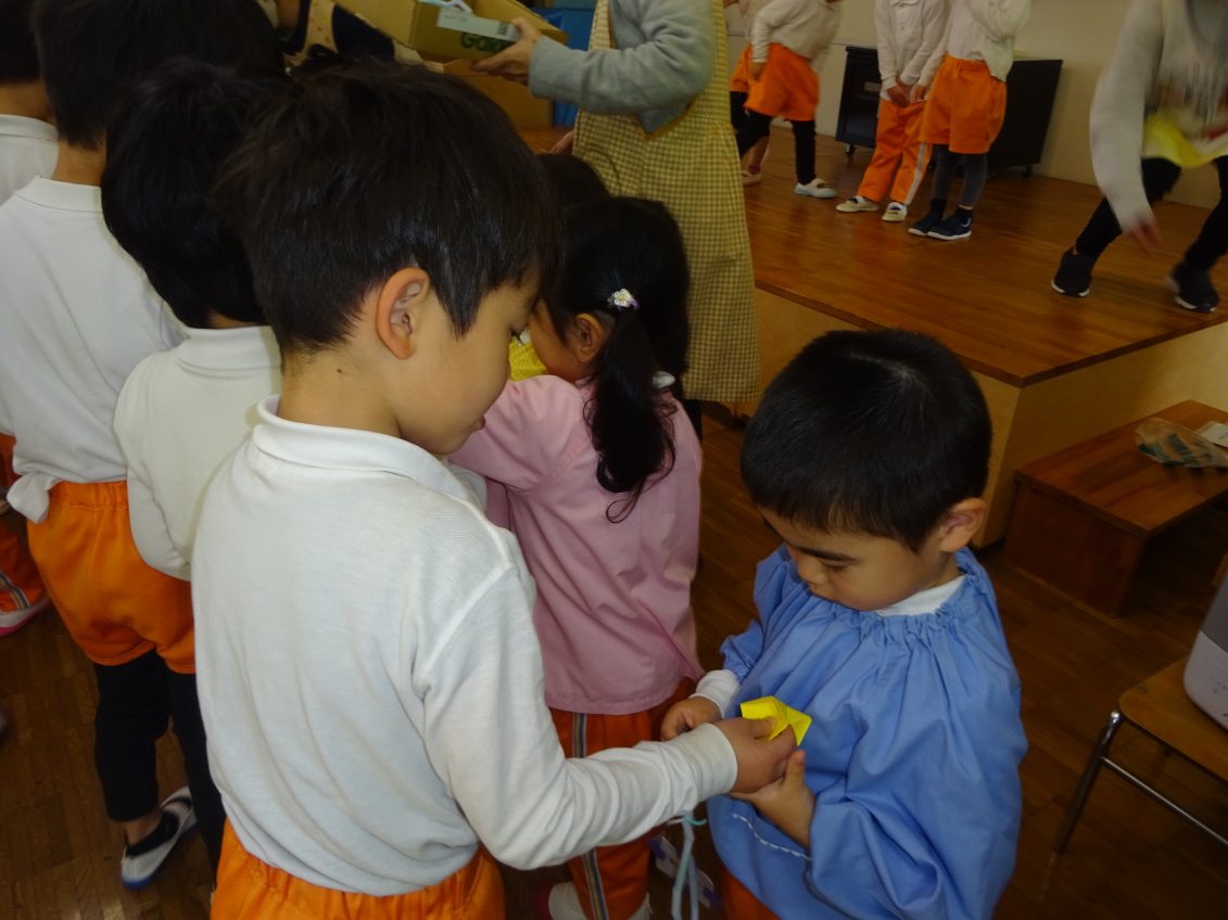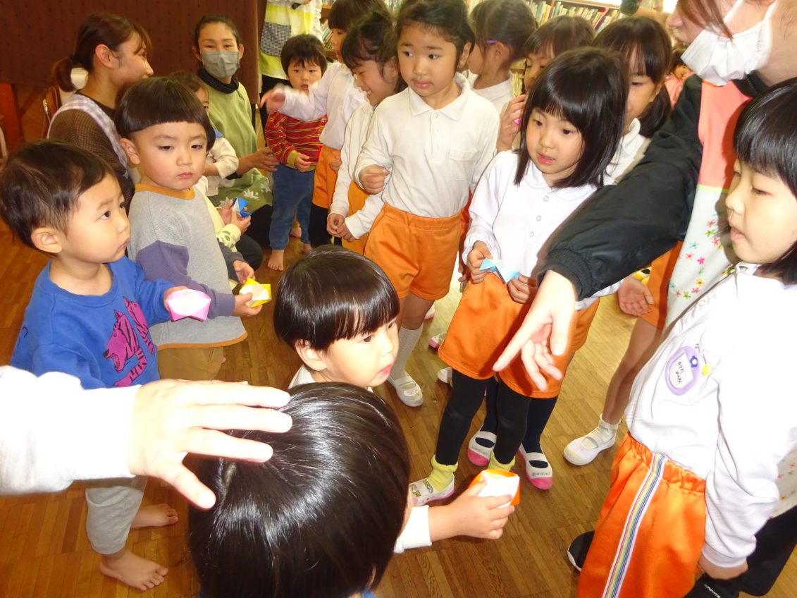 すみれさんとのお別れ会! 2026年3月6日 卒園の日が近づいているすみれさんとのお別れ会を、全園児で行いました 歌やダンスの出し物を披露し、みんなで楽しい雰囲気の中で行えました。 給食もすみれさんを囲んで楽しい昼食となりましたよ